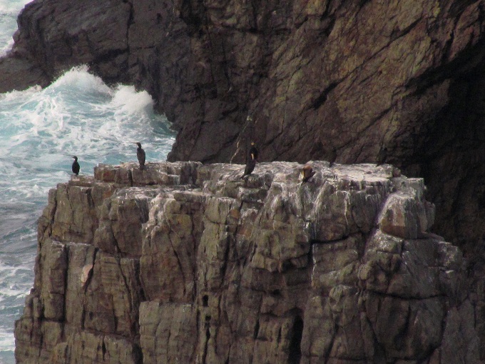 Na praia da Concha de Cariño raro se fai non lles botar un ollo aos gorullos. Eu penso que esta media ducia andan de garda invernal permanente e pouco se moven dela. Ofrecen así ocasión diaria de gozar das horas coa contemplación amodada e prósima da súa leda e fermosa farda, na que sempre ese ollo vermello da en suxerir lembranzas de pantasmas e avisiós.